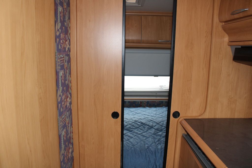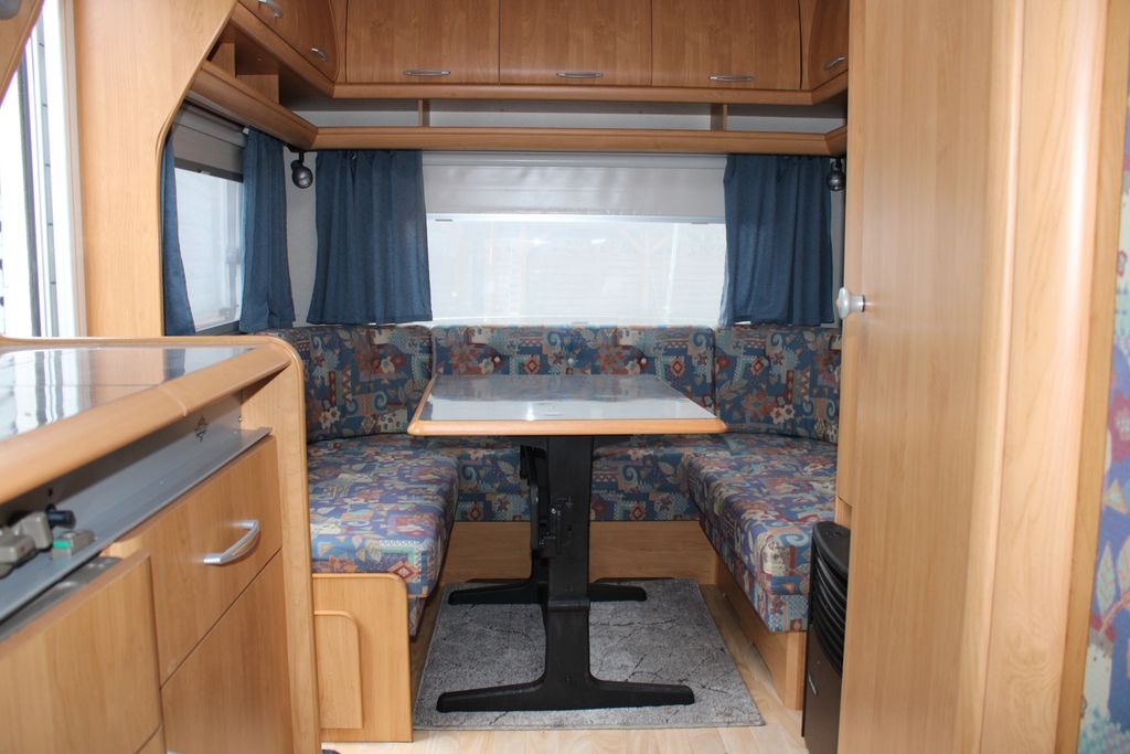Przestronne wnętrze z dwoma funkcjonalnymi pomieszczeniami wypoczynkowymi, rozmieszczonymi po przeciwległych stronach pojazdu to niewątpliwie jedna z najpraktyczniejszych wersji kempingu. Przód zajmuje zamykana drzwiami przesuwnymi sypialnia z szerokim łóżkiem rozstawionym na stałe. Z tyłu mieszczą się siedziska w kształcie podkowy z obniżanym stołem, tworzące dodatkowe dwuosobowe miejsce noclegowe. Po prawej stronie wejścia znajduje się kuchnia wyposażona w lodówkę z zamrażalnikiem, 3-palnikową kuchenkę gazową i zlewozmywak z pokrywami. Na przeciwko stoi szafa ubraniowa wraz z ogrzewaniem u dołu. Tuż obok szafy znajduje się łazienka z toaletą kasetową, brodzikiem, umywalką, szafkami i półkami na kosmetyki. Górną przestrzeń pojazdu zajmują obszerne szafki. Wszystkie boczne okna wyposażone są w rolety przeciwsłoneczne z moskitierami do ochrony przed owadami. Na haku założony jest zaczep bezpieczeństwa ze stabilizatorem toru jazdy tłumiący wężykowanie w czasie podróżowania. Przyczepa wyposażona w solar. Przy zakupie zapewniamy sprawdzenie wszystkich urządzeń. Wystawiamy fakturę VAT-marża, tzn., że klient nie płaci podatku. Zapraszamy do Wiórka koło Poznania od poniedziałku do soboty! Więcej informacji pod nr tel. 501 355 133 (Jacek)