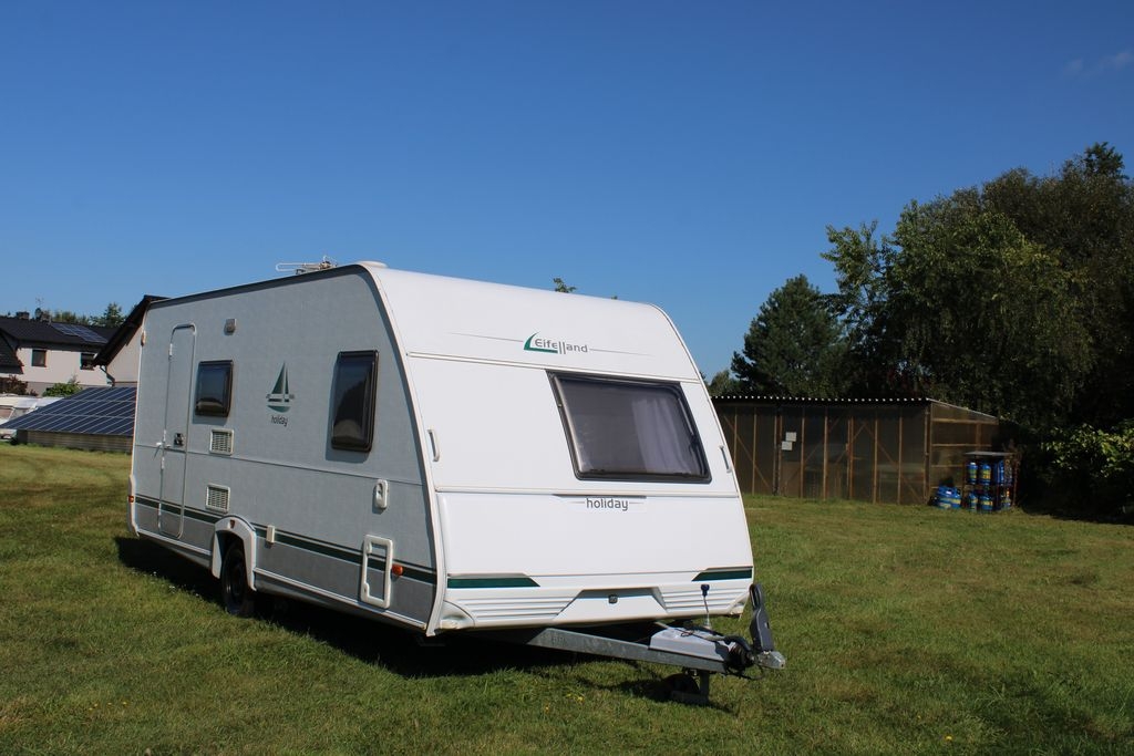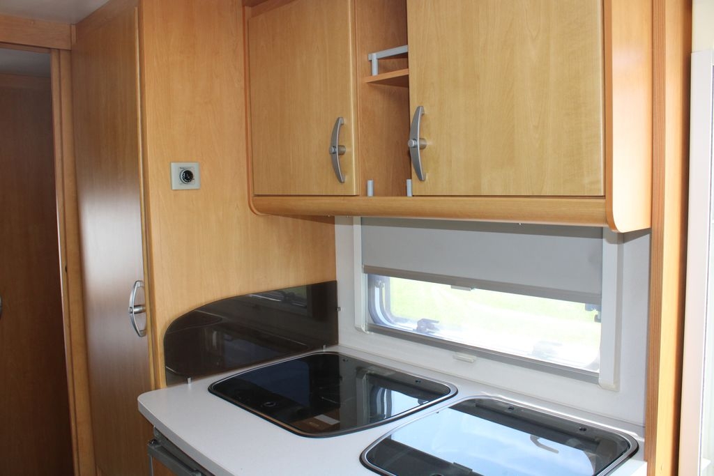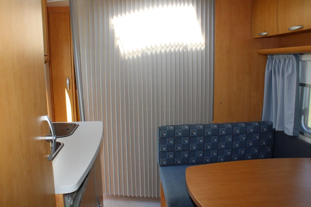 Przyczepa kempingowa podróżna o funkcjonalnym i atrakcyjnym wnętrzu, idealna dla pięciu do sześciu osób. Zaprojektowana z myślą o wygodzie i praktyczności, oferuje komfortowe rozkładanie sypialni oraz przemyślane rozmieszczenie pomieszczeń.