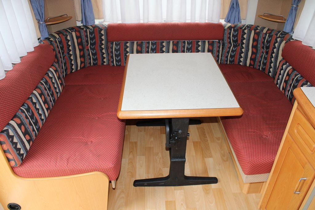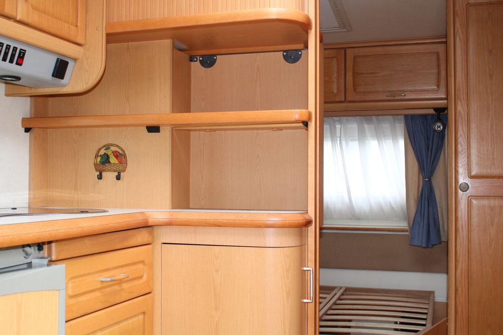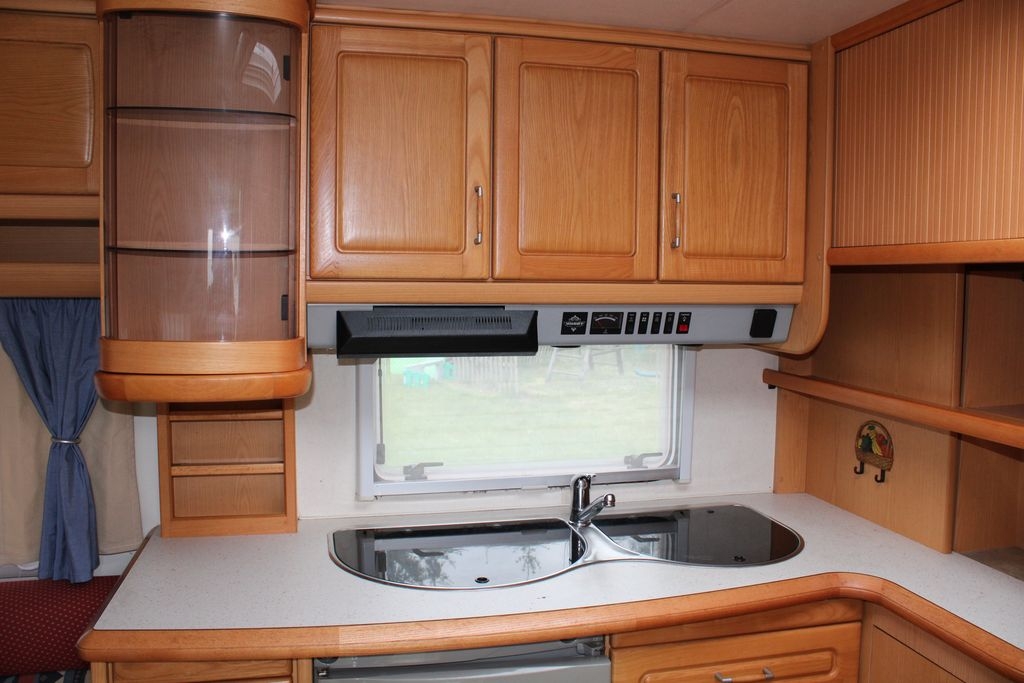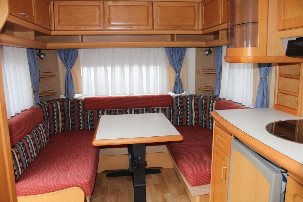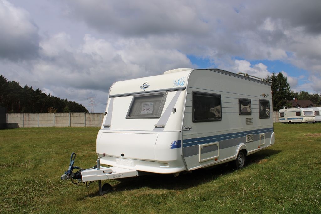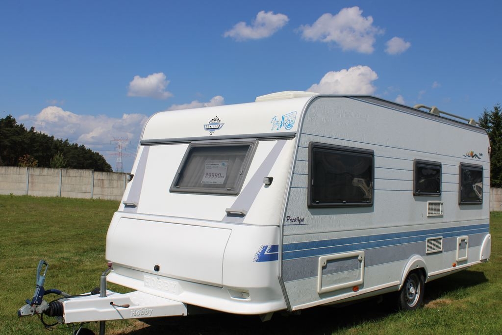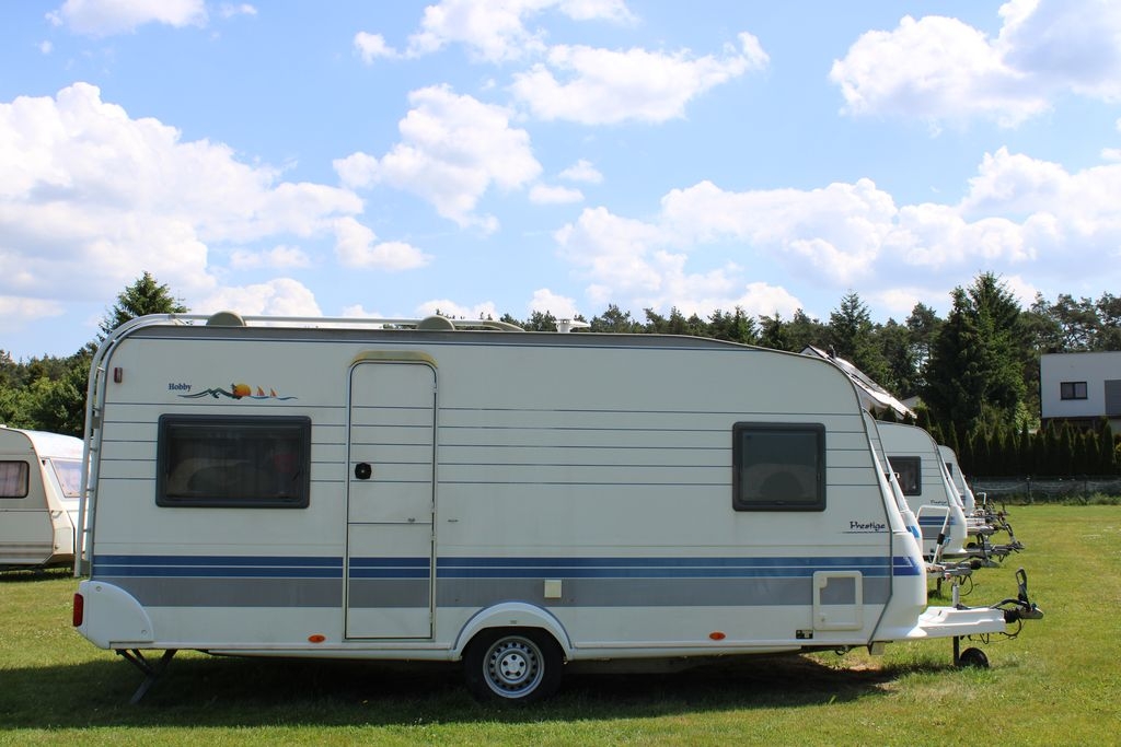Przyczepa kempingowa dla czterech osób lub samotnej pary. W przedniej części znajduje się łóżko dwuosobowe rozstawione na stałe, a tuż obok urządzona jest łazienka z brodzikiem i prysznicem oraz toaletą kasetową opróżnianą od zewnątrz, a przed wejściem do kabiny zamontowana jest oddzielna umywalka z szafkami, półkami i lustrami. Ta strefa jest oddzielona od pozostałych części pojazdu drzwiami przesuwnymi. Z tyłu, po lewej stronie drzwi wejściowych mieszczą się rozkładane kanapy w kształcie podkowy z obniżanym stołem z przeznaczeniem na dodatkową sypialnię, wystarczy tylko odpowiednio ułożyć materace. Na przeciwko drzwi wejściowych znajduje się kuchnia, wyposażona w kuchenkę gazową, zlewozmywak, lodówkę z zamrażalnikiem i szafki, a tuż obok w górnej części szafka na TV z instalacją. Po prawej stronie drzwi wejściowych stoi szafa ubraniowa wraz z zamontowanym u dołu ogrzewaniem. Górną przestrzeń zajmują obszerne szafki i półki wraz z oświetleniem. Wszystkie boczne okna wyposażone są w rolety przeciwsłoneczne z moskitierami. W dachu zamontowane duże okno z moskitierą i roletą. Na tylnej ścianie przyczepy znajduje się drabinka do wejścia na dach, gdzie zamocowane są relingi. Przyczepa została starannie przygotowana do sprzedaży, abyś mógł/a bez problemu skorzystać ze wszystkich udogodnień. Serdecznie zapraszamy Cię na oględziny. Zachęcamy do odwiedzenia nas od poniedziałku do soboty w Wiórku koło Poznania, na placu przy lesie, który niestety jest niewidoczny z głównej drogi. Więcej informacji uzyskasz pod numerami telefonów: 501 355 133 (Jacek) lub 501 922 844 (Julia).
