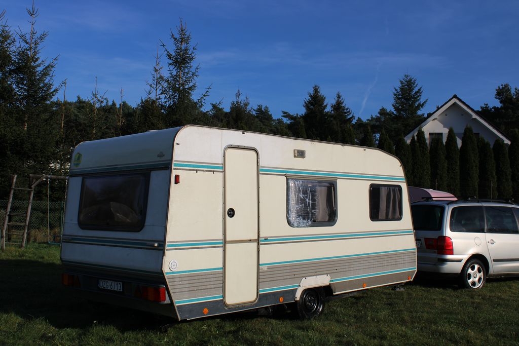 Przyczepa podróżna z dwoma oddzielnymi sypialniami dla czterech dorosłych osób. Przód zajmują dwie kanapy i stolik, które po rozłożeniu tworzą miejsce noclegowe dla dwóch osób. Środek przyczepy to strefa dzienna z zestawem wypoczynkowym z dwiema kanapami i obniżanym stołem, które można przekształcić w kolejne miejsce noclegowe. Na przeciwko salonki mieści się kuchnia wyposażona w zlewozmywak, kuchenkę gazową, lodówkę z zamrażalnikiem i szafki. Tuż obok szafa ubraniowa z zamontowanym u dołu ogrzewanie gazowym oraz łazienka z brodzikiem, umywalką, szafkami i lustrem. W górnej przestrzeni wbudowane są schowki i półki wraz z oświetleniem. We wszystkich oknach zamontowane są rolety przeciwsłoneczne z moskitierami. Przyczepa została doposażona w światła led, przetwornica 12-220V, akumulator, zbiornik brudną i czystą wodę Przy sprzedaży podłączane są wszystkie instalacje i udzielany jest przyszłemu właścicielowi dokładny instruktaż. Umożliwiamy dowóz. Zapraszamy do Wiórka koło Poznania czynne przez sześć dni w tygodniu!!! Więcej informacji pod nr tel. 501 355 133 (Jacek) lub 501 922 844 (Julia).